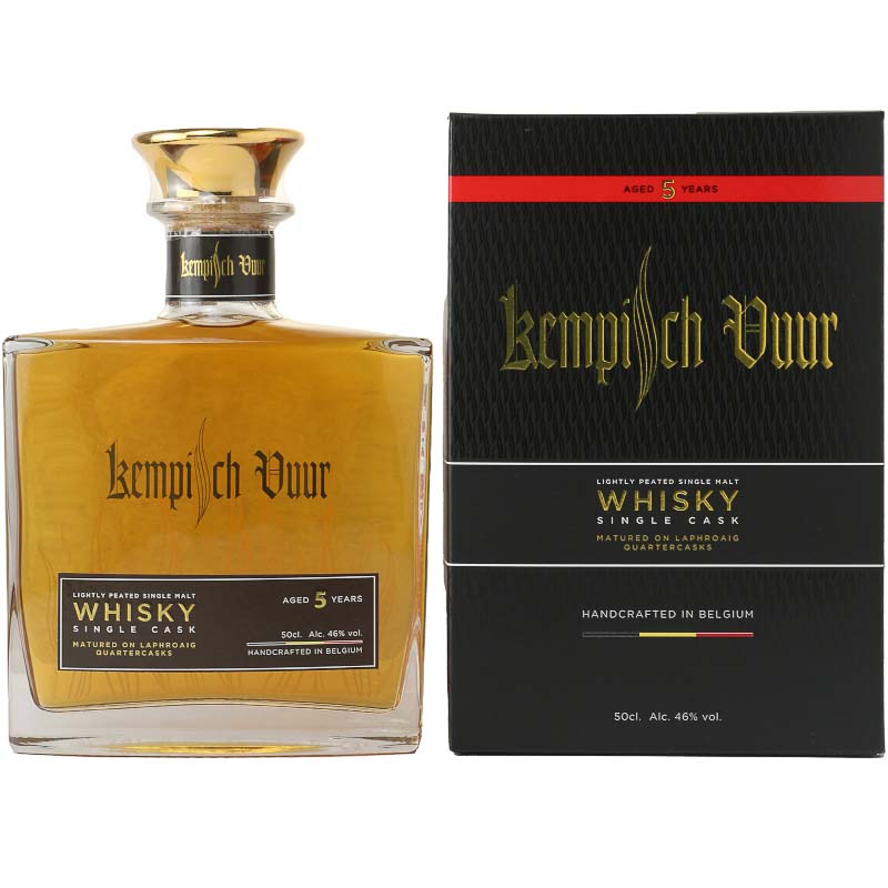 Kempisch Vuur Lightly Peated Single Malt is een Belgische single malt whisky die zich onderscheidt door de subtiele aanwezigheid van turf tijdens het moutproces. Als single malt betekent dit dat de whisky volledig is vervaardigd uit gemoute gerst en geproduceerd door één enkele distilleerderij: Stokerij De Molenberg, onderdeel van Brouwerij Het Anker. De “lightly peated” aanduiding geeft aan dat er een zorgvuldig afgemeten hoeveelheid turf is gebruikt bij het drogen van de gerst, wat resulteert in een zachte, rokerige nuance die de andere smaken complementeert zonder te overheersen.
