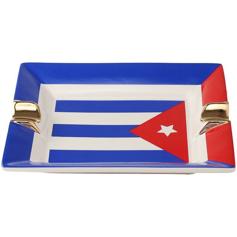 Deze sigarenasbak met daarop de Cubaanse vlag is geschikt voor 2 sigaren.